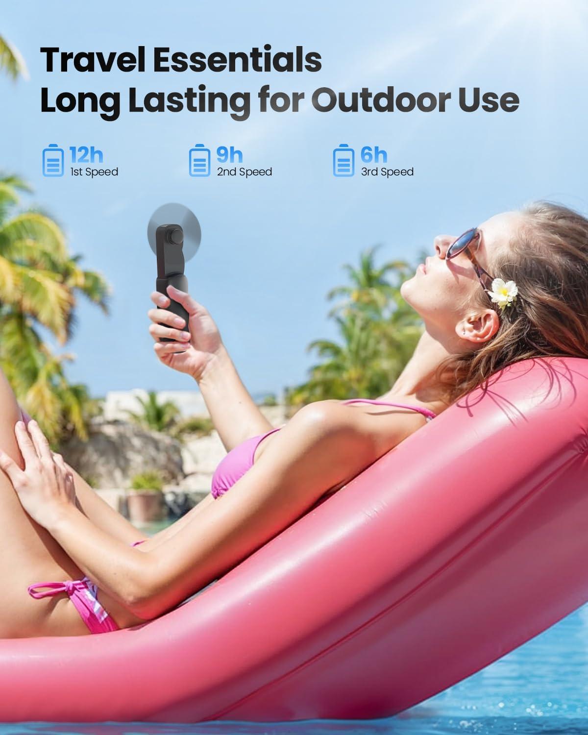 Mini Travel Essentials For Women: The summer essentials is a good outdoor fan for travel, cruise, vacation, beach, concert, rave, festival, camping, hiking, road trip, wedding, pool; You can also use the usb fan at home, office, school, airplane and cabin