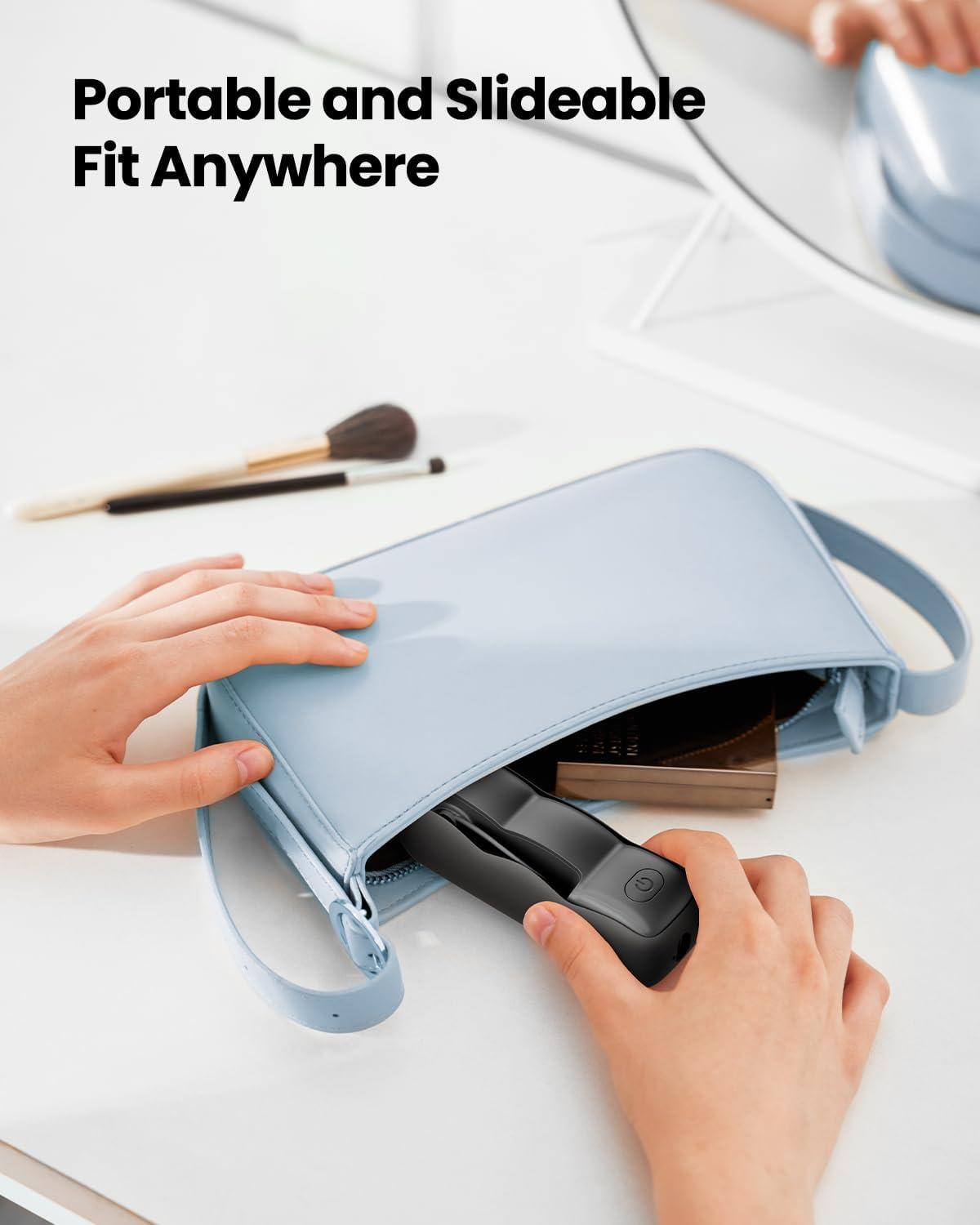 Lightweight Pocket Fan: Before sliding: 1.57*1.42*4.25 in, After sliding: 1.57*1.42*6.85 in; Perfect size to put the travel fan in your bag, purse, pouch, pocket, backpack; Great airplane travel essentials for flying, a real portable fan for travel