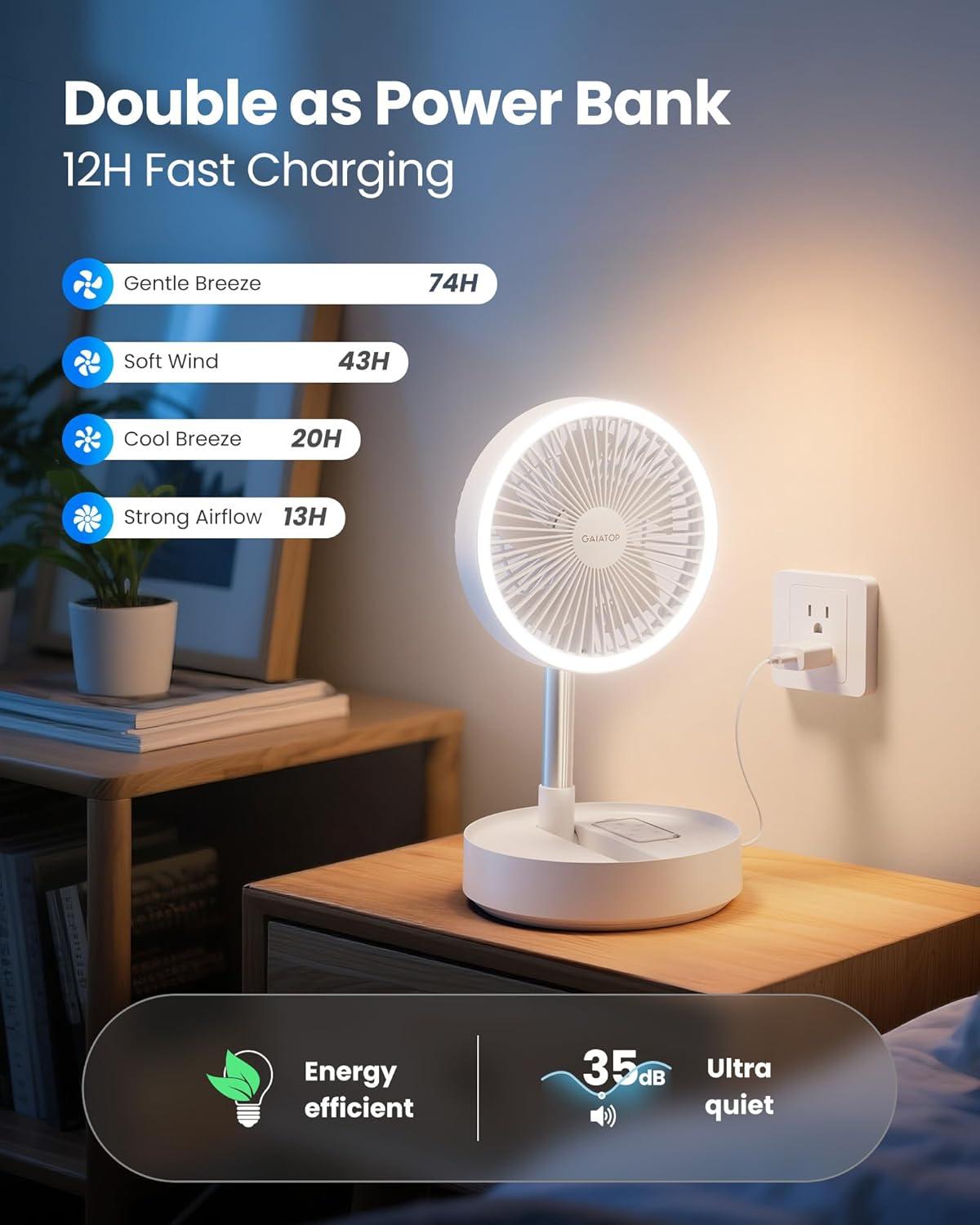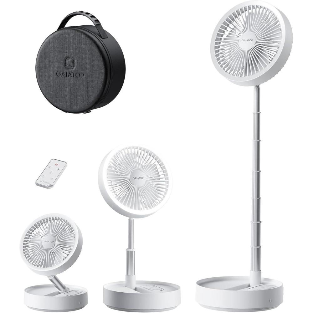 Be the first to review “Gaiatop Portable Pedestal Fan 16000mAh Battery [Max 74h Runtime], Foldable Oscillating Standing Fan, Collapsible Desk Fans, LED Light, Case & Remote Control, 4 Speeds for Outdoor Travel Camping Office(White)”